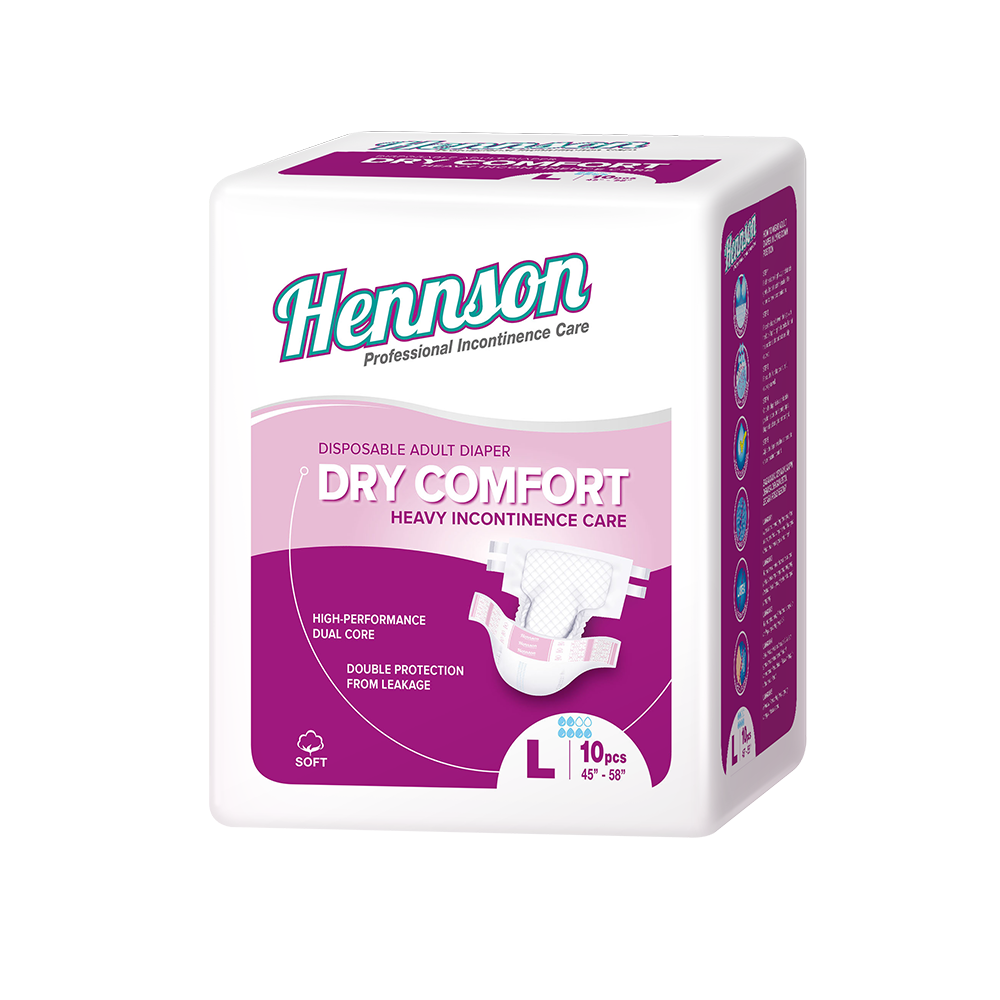 Hennson Dry Comfort Adult Diaper is specially designed for dry and comfort. It is made of medical-grade Super Absorbency Polymer (SAP) with anti-bacterial and odour control properties.